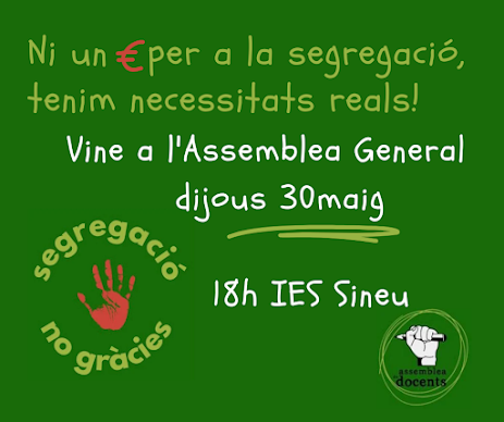 Convocam tot el col·lectiu docent a l’Assemblea General, amb caràcter obert, que tendrà lloc el dijous 30 de maig, a les 18 hores, a l’IES Sineu amb el següent ordre del dia: